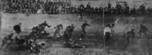 The Centre victory was a shock, but perhaps not a fluke; the team finished the 1921 regular season 9–0, with shutout defeats of Kentucky, Auburn, Washington and Lee, and Tulane.[30] By the time Centre played Washington and Lee, the football team had earned a gross sum of $66,000 (equivalent to $1.08 million in 2022) for the school.[58] The Praying Colonels were inundated with offers of postseason games and had to decline invitations from the Polo Grounds, Yale, Princeton, the Rose Bowl, and Notre Dame; the last of these invitations was delivered in person in Danville by Fighting Irish head coach Knute Rockne.[24] Ultimately, Centre opted to take part in two postseason contests. The first was played in San Diego as the San Diego East-West Christmas Classic and saw Centre defeat Arizona by a score of 38–0.[59] Their second postseason contest was the Dixie Classic to be played against Texas A&M at Fair Park Stadium in Dallas.[60] McMillin was married on the morning of the game; the wedding was attended by members of the Centre team who afterwards went to the stadium to play. A&M held a 2–0 lead through halftime and scored three touchdowns in the second half to secure a 22–14 victory which itself was called "one of the biggest upsets of the football season" by the New-York Tribune.[61] This game is also remembered as the birth of Texas A&M's "12th man" tradition after a former member of the A&M football team who was in the press box was called down to suit up by head coach Dana X. Bible, though he ultimately did not play.[62] Centre, as a result of the loss, concluded their season with a 10–1 record and cumulatively outscored their opponents by a margin of 334 to 28.[30]