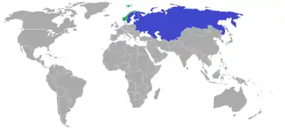 Green: members of the Federation of International Bandy not participating in this year's World Championship