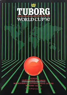 The 1987 World Cup was a professional snooker non-ranking tournament held 18–21 March 1987. The event was hosted at the Bournemouth International Centre in Bournemouth, England, and featured eight national teams each comprising three players.[1] The tournament organisers, the World Professional Billiards and Snooker Association had wanted to change the format to remove the national basis of the teams and invite the top 24 players in the snooker world rankings. This idea was put aside after top-ranked player Steve Davis said he would not participate in tournament if it was run under the proposed new format.[2] Brewers Tuborg sponsored the event.[2]