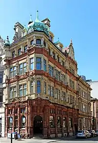The Adelphi Bank Building is a 19th-century Grade II* listed former bank located in Liverpool, England. Completed in 1892 for the now defunct Adelphi Bank the building's architecture has been described as a mixture of French European Renaissance with Nordic and Eastern European themes.[1][2] At present, the ground floor is a branch of the Caffè Nero coffee house.[3]