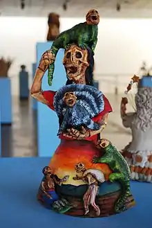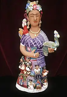 The couple had four daughters Guillermina, Josefina, Irene and Concepcion, who began learning ceramics young as assistants to their mother.[4] They learned their mother's new style, and as they became older adapted and expanded the repertoire to include images of Frida Kahlo, the Virgin of Guadalupe and even prostitutes. These innovations are due in part to the popularity of the pieces among international tourists, a number of which visit the sisters' studios. These women, in turn, have taught their children and even their grandchildren.[4][2][5]