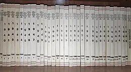 - ↑ in 1979 there were 3 vols published; in following years the numbers were: 1980 2 vols, 1981 2 vols, 1982 1 volume, 1983 2 vols, 1984–1985 no volume, 1986 1 volume, 1987 1 volume, 1988 3 vols, 1989 2 vols, 1990 3 vols, 1991 3 vols, 1992 no volume, 1993 1 volume (index)