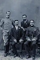 - ↑ Melanio (?-after 1918, married to Ignacia Maisonnave) and Luis (1888-after 1969, married to Martina Mayo; she was granddaughter to a chocolate tycoon Pedro Mayo, Ruiz de Glarreta. Teodoro, [in:] Fototeca de Navarra, available here, also Felipe Ruiz de Galarreta Dombrass entry, [in:] Geneaordonez service, available here, also Hermanos Ruiz de Galarreta y Maeztu, [in:] TarragonaVintage service, available here