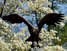 The memorial's centerpiece is a 220-pound solid bronze eagle sculpture titled Spirit of Freedom, which stands 3.5 feet high and has an expansive wingspan of five feet in length. The sculpture was purchased by a single donor from a bronze sculpture and art company located in California. Inscriptions beneath the bronze eagle sculpture read, "Spirit of Freedom" (front) and "God Bless the USA" (reverse).