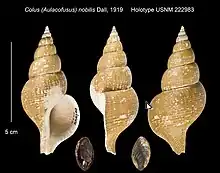 Shell of Aulacofusus herendeeni (holotype at the Smithsonian Institution) | |