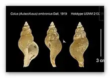 Shell of Aulacofusus ombronius (holotype at the Sùithsonian Institution) | |
