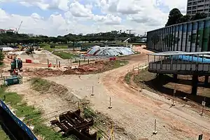 Contract J108 for the design and construction of Bukit Batok West Station and associated viaducts was awarded to John Holland Pty Ltd – McConnell Dowell South East Asia Pte Ltd Joint Venture (JV) at a sum of S$265.4 million in March 2020. Construction will start in 2020, with completion in 2028.[5][6] Contract J108 also includes the design and construction of Tengah Plantation Station and Tengah Park Station, and associated viaducts.[7][8]