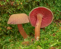 Callistosporium is a genus of fungi in the order Agaricales. Basidiocarps (fruit bodies) are agarics (gilled mushrooms), either with a central stipe (stalk} or pleurotoid (with a lateral stipe). The latter group were formerly referred to Pleurocollybia. Recent molecular research, based on cladistic analysis of DNA sequences, has shown that the genus is a natural, monophyletic grouping, though not all species have yet been sequenced.[2] Species are saprotrophic, typically growing on wood, and the genus is found worldwide.