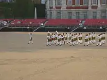In 2008, the PPRAMD was invited to perform in the United Kingdom, performing at Royal Tattoo at Windsor Castle, at the Household Division Beating Retreat on Horse Guards Parade, and the mounting of the Queen's Guard at Buckingham Palace.[2] Domestically, the PPRAMD was responsible for according state visits for foreign leaders, such as King Salman, President Emmanuel Macron,[3] and President Barack Obama.[4] During all of the arrival honors for the mentioned leaders, Menjunjung Duli was played by the PPRAMD during the inspection of the guard of honour. In supporting all events of national importance, the PPRAMD is always seen at high level occasions, such as the Installation of the Yang di-Pertuan Agong and the Opening of Parliament.