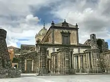 The Chiesa Madre (Mother Church), dedicated to Maria Santissima Assunta (Holiest Mary of the Assumption) is the largest Roman Catholic church in Adrano, and located in center of town, adjacent to the Norman Castle of the town, in the region of Sicily, Italy.