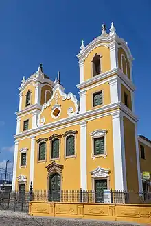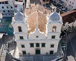 The Church of Our Lady of Health and Glory (Portuguese: Igreja de Nossa Senhora da Saúde, or more fully Portuguese: Igreja de Nossa Senhora da Saúde e Glória) is an 18th-century Roman Catholic church located in Salvador, Bahia, Brazil. The church is dedicated to Our Lady of Health. It was constructed by Manuel Ramos Parente and his wife Maria de Almeida Reis on the second line of hills below the Historic Center of Salvador in the 18th century. The first mass was celebrated in 1726, the same year that Parente died. The church is noted for the painting on the ceiling of the nave by Domingos da Costa Filgueira (?—1797), the first in Bahia. The interior of the church was slowly completed into the 19th century; it now has neoclassical interior elements and an elaborate Baroque and rococo façade. Its two towers have elaborately tiled tops.[1][2][3][4]