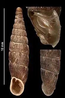 | Shell of Clausilia cruciata bonellii (specimen at MNHN, Paris) | |