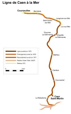 The line ran from Caen to Courseulles and served the following towns and villages: