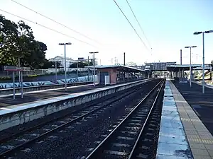 The station was rebuilt in 1960 as part of the quadruplication of the line from Roma Street.[2] In 2010, the quadruplication was extended to Darra as part of the construction of the Springfield line.[3]