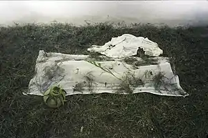 Diwan has pushed the boundaries of photography by developing a technique of combining painting, acting, and photography to narrate his personal impressions and experiences of the world in and around him. He creates a three-dimensional immersive environment in which there is a painting in the backdrop, actors whose bodies are painted and props[14] created specifically around the themes he is working on (in the series Violence, Waking the Dead, Shores of the Unknown and After the Turmoil).[18] This temporary installation of various elements is photographed on a transparency film which is further exposed in the darkroom on a normal photographic paper by controlling the rendition of images with the play of filters.[17]