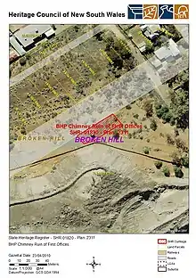 - 1 2 3 4 5 6 7 8 9 10 11 12 13 14 15 16 17 18 19 20 21 22 "BHP Chimney Ruin of First Offices". New South Wales State Heritage Register. Department of Planning & Environment. H01820. Retrieved 2 June 2018.