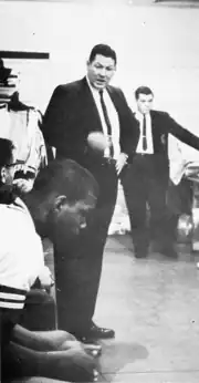 Born in Madison, Wisconsin, Ireland was an All-American basketball player at the University of Notre Dame during the 1930s. His first coaching job was at Marmion Academy in Aurora, Illinois, which he led to 262–87 record from 1936 to 1951. In 1951, he succeeded John Jordan, a former teammate at Notre Dame, as head coach at Loyola University Chicago, and he remained at Loyola until 1975.[2] Ireland encouraged full-court press and a high-speed style of play. In 1962, he became the first coach of a major NCAA program to use five African American players in a game at the same time. (This was particularly notable at the time, as some schools refused to play against a team with even one black player.)[3][4]