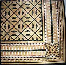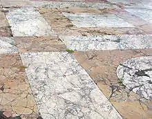Pliny[4] attributes its introduction in Rome to Lepidus in 78 BC who used blocks of it for the thresholds of his house. Suetonius[5] reports that the people had an honorific column of Numidian marble dedicated to Caesar erected in the Roman Forum. Augustus used the marble for the columns of the peristyle of his house on the Palatine together with portasanta and pavonazzetto marble, and he also made extensive use of it in his Forum.[6] It was also used for statues of particularly of barbarians or wild beasts. In the 3rd century the quarries gradually became exhausted and the giallo antico was progressively replaced by yellow breccias of other origins and of lesser value.