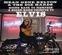 Going Back To Memphis: A Biker Band Tribute To Elvis is the third album[1] for "Mean" Gene Kelton and the Die Hards. It was released in 2007 by JamBone Records. It contains 13 songs that are licensed by Elvis Presley Enterprises in Los Angeles, California.[2] All thirteen songs were recorded in a row, live and raw, just like at a motorcycle rally. Only the harmonica and background vocals were dubbed in. The CD was recorded, mixed, and mastered in one marathon session on the night of June 23, 2007, at Sun Studio in Memphis, Tennessee.