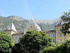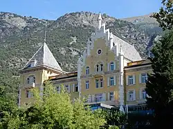 The building was built in 1908 on behalf of Italian entrepreneur Stefano Billia, who already managed the stagecoach service between Ivrea and Saint Vincent. At that time, Saint-Vincent was an emerging resort destination thanks to the renowned thermal waters of the Fons salutis. At its opening, the hotel had 138 rooms with a total of 200 beds.[1]