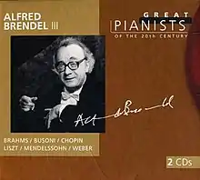 Great Pianists of the 20th Century - Alfred Brendel III is volume 14 of the Great Pianists of the 20th Century box set and is the third of three volumes dedicated to him. It features music by the composers Felix Mendelssohn, Carl Maria von Weber, Johannes Brahms, Frédéric Chopin, Franz Liszt, and Ferruccio Busoni. It was issued in CD format in 1999.