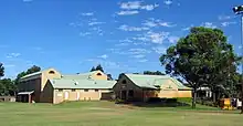 Aintree-Eglinton Reserve, a grassed area covering 3.38 hectares (8.4 acres), contains a cricket pitch, several practice runs and night lights for Australian rules football, which are utilised by local amateur and junior clubs.[60] Within the reserve is the Hamersley Community Recreation Centre, first built in the 1970s as a community hall[41] and opened in its present form on 22 April 1990.[51] The centre is a small village area consisting of a central pergola crossed with walking paths, flanked by four buildings: a sports hall with basketball courts and kiosk, an arts and crafts building, a community hall and function building hosting discos and other social events, and a purpose-built children's centre.[61] Near the centre are the 1st Hamersley Scout Group, a child health centre and the Holy Cross Anglican Church, a colonial-style building built in 1974 and consecrated on 14 December 1980 to serve the newly formed Balcatta-Hamersley Parish.[40]