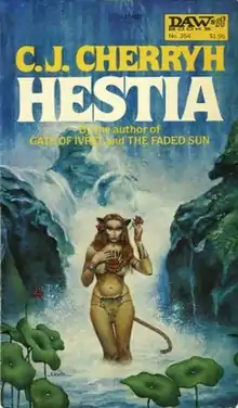 Hestia is a 1979 science fiction novel by American writer C. J. Cherryh. It is an early novel in her career, about colonists on an alien world and their interactions with the catlike natives, centering on a young engineer sent to solve the colonists' problems, and his relationship with the young native cat-woman in scanty clothing on the cover.