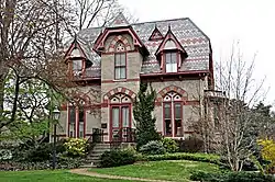 The House at 203 Islington Road is a historic house at 203 Islington Road in Newton, Massachusetts. It is an elaborately decorated Late Victorian house, built in buff-colored stone with dark brick trim elements. Built in 1870, it is the only surviving element of a larger estate (known as "Islington") built by Ezra Winslow; the main estate house, overlooking the nearby Charles River, has long been demolished.[2] It was briefly featured in episode 1 of the 31st season of the PBS television series This Old House (2009).[3]