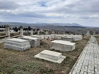 In September 2009, the Štip Museum started with the renovation of the Jewish Cemetery. According to Zoran Čitkušev, the then director of the museum in Štip, it was planned to renovate and conserve the graves. At the same time, it was planned to arrange the cemetery itself, build an access road and install a fence wall. The renovation was carried out with funds from the Central Government, the Ministry of Culture and the Office for Protection of Cultural Heritage.[4] On April 1, 2015, a memorandum for cooperation was signed between the Štip Municipality and the Ministry of Culture, with which in 2016 the protective wall of the cemetery was built and completed. Today, there are 120 Jewish tombstones in the cemetery, placed horizontally, according to the Jewish burial method.[3]
