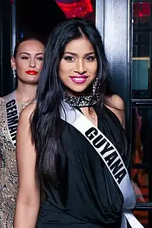 The 22-year-old beauty, Katherina Roshana was crowned Miss Guyana, Sunday evening at the poolside of the Pegasus Hotel in Kingston, Georgetown. Roshana, whose platform was autism, represented Guyana at the Miss Universe 2013 pageant on November 9 in Moscow, Russia but failed to place in the semifinals.[2]
