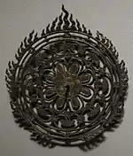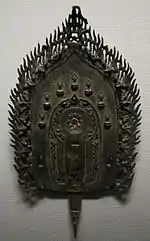| ICP | Bronze Mandorla 銅造光背(法隆寺献納) dōzō kōhai | 594 | the inscription on the back includes "wood tiger" (甲寅年) | ![]() | 31.0 centimetres (12.2 in) by 17.8 centimetres (7.0 in) | N-196 | |