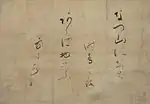 | Waka Kaishi 和歌懐紙 waka kaishi | C18 | by Empress Go-Sakuramachi | ![]() | 30.3 centimetres (11.9 in) by 43.3 centimetres (17.0 in) | N-16 | ||