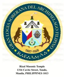 - ↑ "Independent Grand Lodge, F & A.M. of the Philippine Islands". Independent Grand Lodge of Free and Accepted Masons of the Philippine Islands. Retrieved 24 January 2018.
