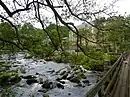 Described by Defoe in 1726 as a "fury of a river" the Derwent could only be forded at a number of particular locations, which could still be impassable during winter floods.[2] Wooden bridges provided for a more reliable crossing, but were easily damaged by those same floods. The wooden bridge at Leadmill was destroyed before it was completed in the early 1700s.[3] Toad-Moor Bridge near Ambergate was rebuilt as Halfpenny Bridge by Francis Hurt in 1792, after being swept away in a flood of 1791. In the Candlemas flood of February 1795, the bridges at Belper and Whatstandwell were washed away, but were subsequently rebuilt soon after.[4][5]