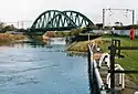 The table lists crossings that have been identified downstream from the River Sow confluence, the first major tributary on the river. Starting at Essex Bridge it includes ferries; road, rail, foot and pipe bridges found along the river to Trent Falls. Fords are only indicated where they predate a known crossing point. In Downstream (2008), author Tom Fort notes that over eighty historic crossings have been identified, most of which were fords or ferries.[1] In The River Trent (2005), author Richard Stone stated that "there are around seventy bridges across the Trent".[2] Each crossing has been marked with its river mileage with mile zero at Essex Bridge, reaching 140 miles (230 km) at Trent Falls.[3][4][5][6][7][8][9] Along the lower reaches, marker boards in kilometres show the distance from Nottingham.[8]
