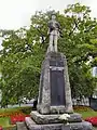 Monmouth War Memorial | St James Square, Monmouth | 1921 | Reginard Harding & W Clarke of Llandaff (sculptor) | Statue on pedestal | Stone | 5.4m high | Grade II | Q6901135 | [16][17] |