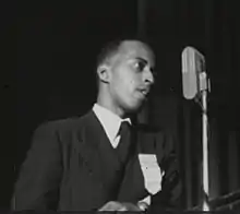 Burnham organized the first chapters of the ASU and the Harlem Youth Congress.[17] Burnham was the Youth Secretary of the National Negro Congress, an umbrella organization of civic, labor and religious groups. As a student, he had also been Vice President of the student council. His prominence in these various organizations was due to both his congeniality and his magnetism as a speaker on racial injustice, the danger of fascism to world peace, and the problems of American young people and the many unemployed during the Great Depression.[2] Following graduation, Burnham took a year of law school[18] at St. John's University School of Law in Queens, New York.[10]