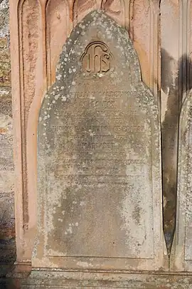 She is buried in the old Kirkyard at Lasswade with her husband, in the plot of her father-in-law, Sir William Calderwood, Lord Polton.