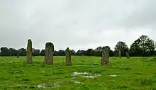 Among the artifacts described by Campbell were the Kilberry Sculptured Stones, found on Campbell's estate.[4] These artifacts are dated to the Early and Medieval Christian Period and consist of 26 sculptured stones including crosses and cross fragments, grave slabs, and effigies.[5] Campbell moved many of the Kilberry Sculptured Stones to the basement of Kilberry Castle in 1948 to better preserve and protect them.[5] In 1951, she donated the stones to the Ministry of Works, which displayed them in a new, separate structure on Campbell's estate.[6]