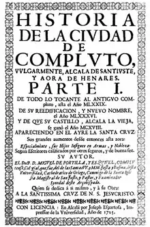- ↑ García Gutiérrez, Francisco Javier. (1997). Alcalá de Henares. Masats, Óscar. Barcelona: Lunwerg. ISBN 84-7782-452-5. OCLC 431898607.