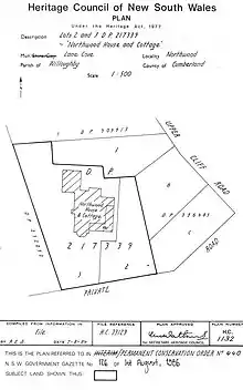 1. 1 2 3 4 5 6 7 8 9 10 11 12 "Northwood House & Cottage". New South Wales State Heritage Register. Department of Planning & Environment. H00440. Retrieved 1 June 2018. Text is licensed by State of New South Wales (Department of Planning and Environment) under CC-BY 4.0 licence.