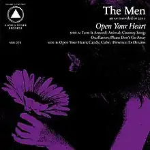 Open Your Heart is the third studio album by the Brooklyn punk rock band The Men, released March 6, 2012 on Sacred Bones Records. The album saw a change in sound for The Men, being less aggressive than the band's previous album Leave Home and incorporating influences from classic rock, country music and surf rock. The album received mostly positive reviews.