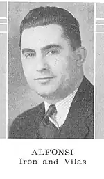 After the 1946 elections, Alfonsi was appointed a public relations officer for the Wisconsin Department of Veterans Affairs, and served in that role until the fall of 1847.[15] Subsequently, Alfonsi returned to teaching, residing at Minocqua, Wisconsin, and worked as principal of Minocqua High School.[16]