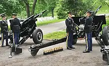 The Presidential Salute Battery (Guns Platoon)[1] is an element of the 3rd United States Infantry Regiment. The battery, which is staffed by soldiers qualified as MOS 11C (Mortarman),[2] is chiefly responsible for firing ceremonial gun-salute honors in general officer funerals and retirements, on state occasions, and in a tactical capacity, is tasked with providing the regiment's indirect fire support.[3]