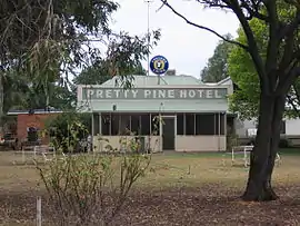 - ↑ Pretty Pine Hotel Property (advertisement), The Pastoral Times (Deniliquin), 29 June 1889, page 3.