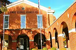 Prince George County Courthouse Historic District is a county courthouse complex and national historic district located at Prince George, Prince George County, Virginia. The district includes 11 contributing buildings and 3 contributing objects. They include the 1883 courthouse, 1900 clerk's office, the jail dated to about 1900, and three mid 20th century Colonial Revival-style office buildings. A Craftsman-style dwelling was adapted for office use and added to the courts complex in the 1970s. The courthouse green includes memorials commemorating the Civil War, World Wars I and II, and the Korean and Vietnam Wars. Also included in the district are the F.L. Buren Store (c. 1870), the Victorian-style Buren residence (c. 1870), and two contributing outbuildings.[3]