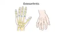 Topical NSAIDs, mainly diclofenac, are prescribed for patients with osteoarthritis.[8] They are effectively absorbed in arms and knees. As osteoarthritis is a disease commonly found in the elderly (>65 years old), oral NSAIDs are seldom used as their systemic side effects are more severe in elderly patients.[8] Therefore, topical NSAIDs are used for osteoarthritis to exert its local analgesic effects and minimize their systemic side effects in elderly patients.[8] ![]() Manifestation of osteoarthritis in finger joints |