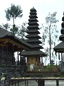 The main shrine of Pura Ulun Danu Batur is located in the inner sanctum (jero). The main shrine is an 11-tiered meru shrine dedicated to Shiva and his consort Parvati.