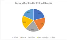 Road Factors: Roads with bad surfaces and designs are prone to causing more accidents. Theoretically, roads with bad designs (steep, crossroads, T, O, and X shapes) are considered to be causing more traffic accidents than roads with good designs (street roads), but in reality, RTA is common in street roads in Ethiopia.[8][12]