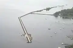 Salter Grove Memorial Park breakwater, with Rock Island at the far end